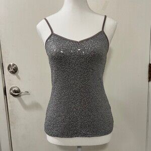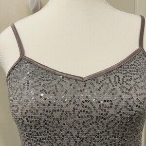 EXPRESS Gray Silver Sequins Spaghetti Strap Metallic Cami Tank Top Glitters SzXS