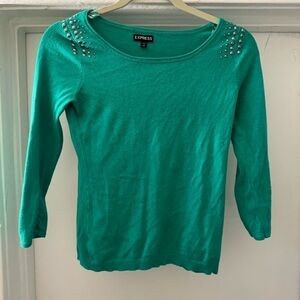 EXPRESS Green with silver design on shoulder 3/4 sleeve top
