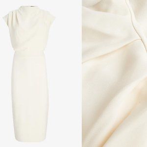 EXPRESS Ivory Draped Mock Neck Midi Sheath Dress