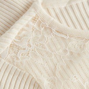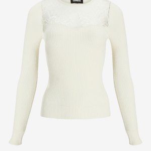 EXPRESS Ivory Lace Neckline Soft Ribbed Sweater Beautiful Shirt Medium 8-10 NWT