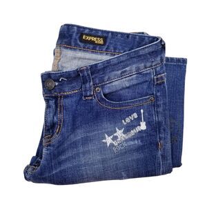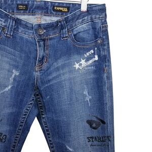 EXPRESS JEANS STELLA Skinny Leg Rock Goddess Size 8. 98% cotton. 2% spandex.