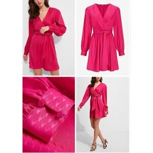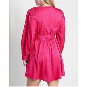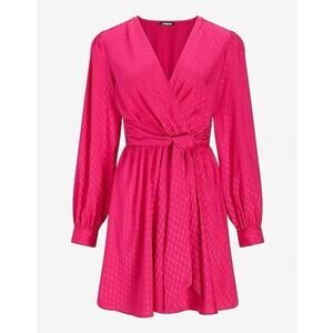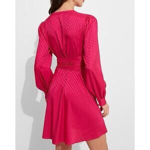 EXPRESS Jacquard Satin Tie Waist Long Sleeve Mini Dress