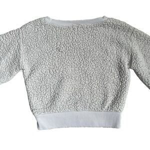 Light purple cropped sweatshirt from Express in a size XS. This sweatshirt is made of sherpa/faux fur material and features a crewneck. The top has slightly oversized balloon sleeves. This sweatshirt is in a very light purple shade. The sweatshirt is in good preloved condition with the only sign of wear being slight matting of the sherpa material as shown in the pictures. The price reflects this flaw.