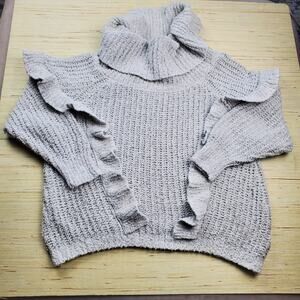 EXPRESS Light Grey Cowl Neck Ruffled Sweater