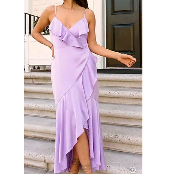 EXPRESS Light Purple Ruffle Wrap Front High-Low Dress
