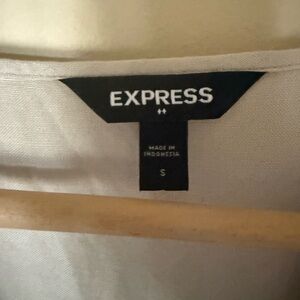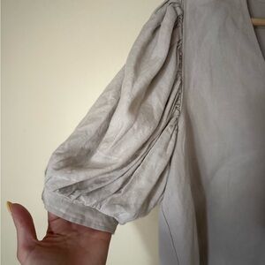 EXPRESS Linen Blend Neutral Beige Puff Sleeve Button Down Top Sz S