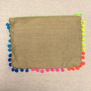 EXPRESS Linen Cotton Bright Neon Watermelon Sequined Tasseled Zip Clutch