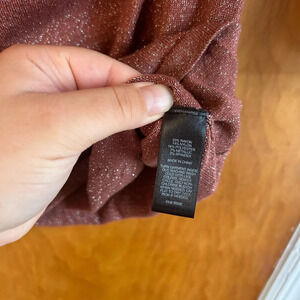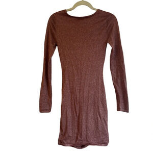 Pre owned excellent condition. Worn once or twice. Super pretty dusty pink ruched sweater dress with silver metallic throughout. Perfect holiday or new years dress! WOMENS size small.