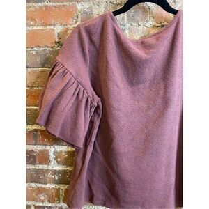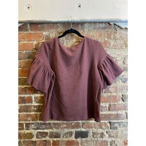 EXPRESS • Maroon Purple -ish Soft Textured Cotton Blend Ruffle Bell Sleeve Semi-casual Top Blouse • Ladies Size M
