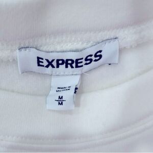 EXPRESS Medium White Puff Sleeve With Rhinestone Sweatshirt
