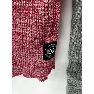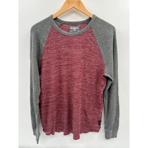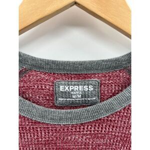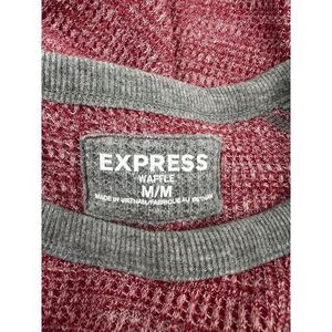 EXPRESS Men's M Red Gray Raglan Waffle Knit Thermal Long Sleeve Crew Neck Shirt
