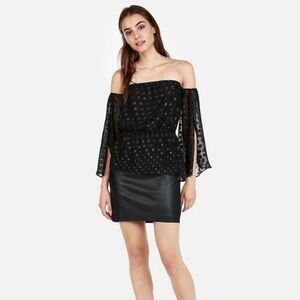 EXPRESS Metallic Black Polka Dot Off The Shoulder Slit Sheer Blouse Size Large