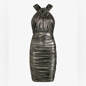EXPRESS Metallic Rosette Halter Ruched Mini Sheath Dress