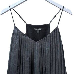 EXPRESS Metallic Top Size Large Metallic Gray Black Pleated Womens Cami NWOT