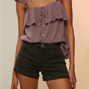 EXPRESS Mid Rise Supersoft Flip Hem Short. A soft, stretchy shortie with a flattering mid rise and casual raw hem. Super versatile, you can wear them unrolled, but we like them cuffed for a more playful, shorter length. Mid rise flip hem shortie