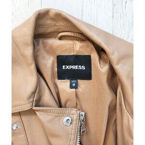 EXPRESS Moto Faux Leather Jacket Tan Silver XS