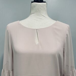 EXPRESS NWT M Women's Pink Sheer Chiffon Blouse Round Neck Balloon Sleeve Office