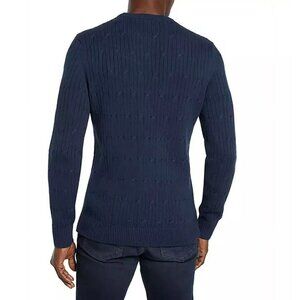 Wrap yourself in the cozy comfort of Express's Men's Cable Knit Sweater in a vibrant Pageant Blue. This classic crew neck sweater, crafted from cotton, offers the perfect blend of warmth and style for your fall, winter, or spring wardrobe. With its timeless cable knit design and long sleeves, it's an ideal layering piece for any casual occasion.