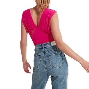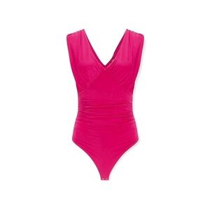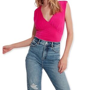EXPRESS Neon Pink Body Contour Double Layer Empire V Neck Thong Bodysuit M NWT