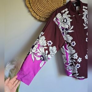 EXPRESS New Boyfriend Portofino Burgundy Floral Button Front Shirt SZ Medium