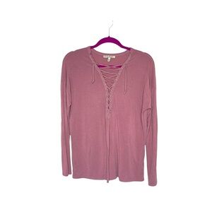 EXPRESS ONE ELEVEN Mauve Lace Up Long Sleeve Top M