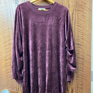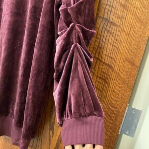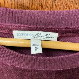Like new Express One Eleven Burgundy velour ruched long sleeve mini tunic shirt dress. EUC, great shape, size medium, cotton, modal, polyester blend, scoop neck, banded neck, sleeves and hem. See pictures for details.