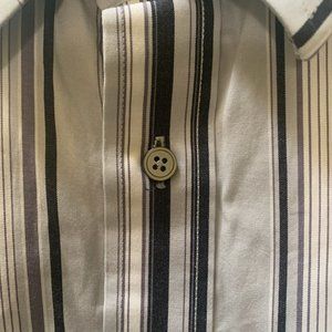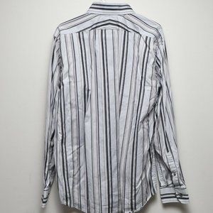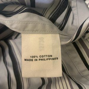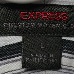 EXPRESS PREMIUM WOVEN CLOTH GRAY, BLACK & PURPLE STRIPED LONG SLEEVE BUTTON FRONT SHIRT SIZE LARGE IN EXCELLENT CONDITION!