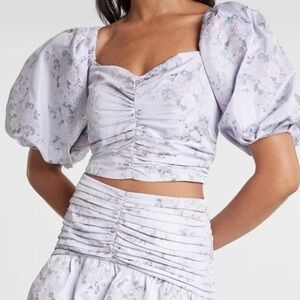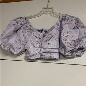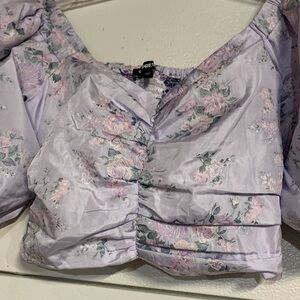 EXPRESS PURPLE FLORAL RUCHED PUFF SLEEVE CROP TOP BLOUSE WOMENS XS