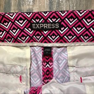 Pink black and white printed dress shorts - brand new condition, no tags - zipper up the side - size two - silk lined pockets - excellent quality preppy shorts - diamond type geometric pattern