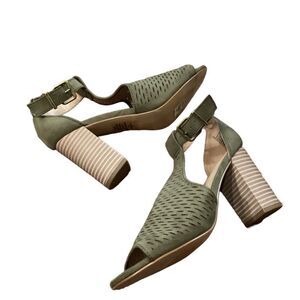 EXPRESS Perforated chunky block heel shoes olive green size 6 peep toe
