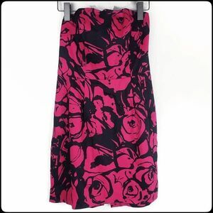 EXPRESS Pink & Black Super Sweet Floral Empire Waist Strapless Dress Size: 8