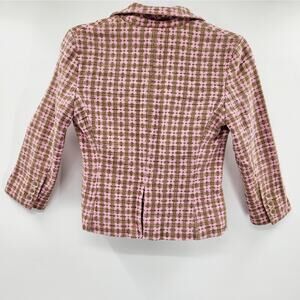 EXPRESS Pink & Brown Tweed Fitted Lined Button-Up Blazer Jacket Women's Size 2