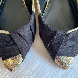 EXPRESS Pointed Toe Slip on Flats in Gold and Black Glitter Size 8