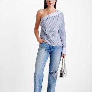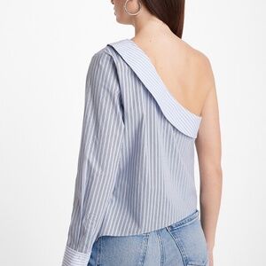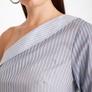 Brand New, With Tags, EXPRESS Poplin Striped One Shoulder Draped Top.