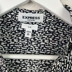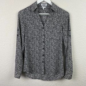 EXPRESS Portofino Womens XS Slim Black White Long Sleeve Button Up Top Blouse