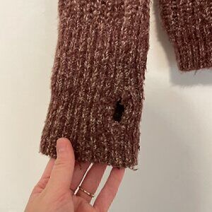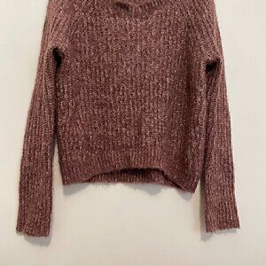EXPRESS Purple White Marled Fuzzy Chunky Knit Thumbholes Round Neck Sweater XS