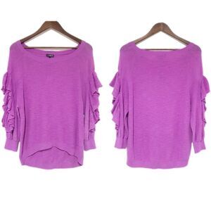 EXPRESS Purple Ruffle Cutout Sweater Off The Shoulder Spring Fall Size Small New