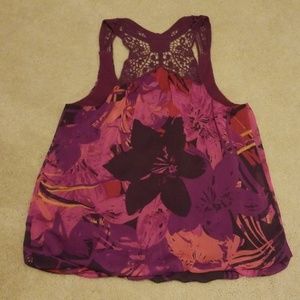 Summery EXPRESS Racer Back Tank including pink, magenta, and orange tones. Beautifully detailed racer back to add some character.