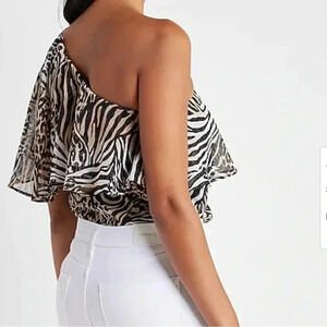 EXPRESS Rachel Zoe Women’s Zebra Animal Draped One Shoulder Night Out Bodysuit M