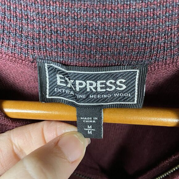 EXPRESS Red 1/4 Zip 100% Extra Fine Merino Wool Collard Sweater Men’s MEDIUM