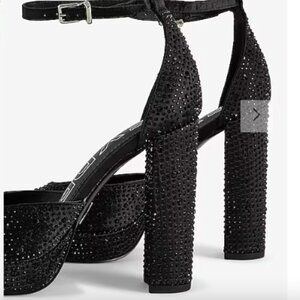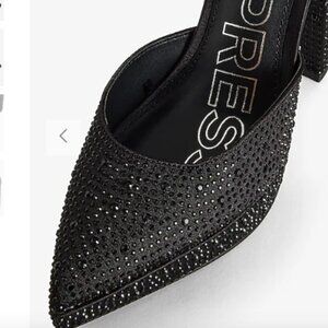 EXPRESS Rhinestone Closed Pointed Toe Platform Pumps Heels 9 NWT Pitch Black