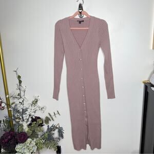 EXPRESS Ribbed Jewel Button Front Midi Sweater Dress Mauve Pink {XX1}