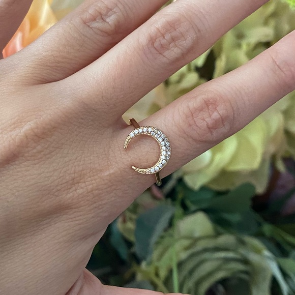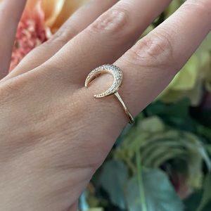 Express gold tone crescent moon shaped ring with gemstone detailing. Delicately beautiful! Size 6. Excellent condition!