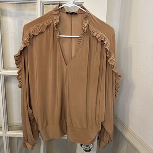 EXPRESS Rust Ruffle Accent Blouse Womens S Western V Neck Dolman Sleeve