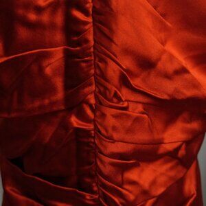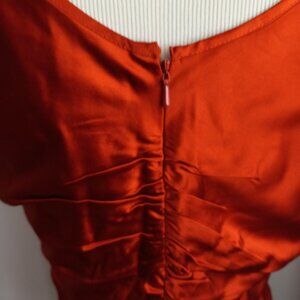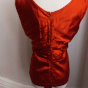 STUNNING EXPRESS SILK BLEND SLEEVELESS TOP. THE COLOR IS SO HARD TO DESCRIBE: BLOOD ORANGE; BURNT ORANGE; COPPER ORANGE JUST GORGEOUS. THIS TOP ZIPS UP THE BACK AND FASTENS WITH HOOK AND EYE. RUCHING ALONG THE SEAM IN THE BACK AND BEAUTIFUL SEAMING IN THE FRONT UNDER THE BUST. IT IS LINED. NEW WITH TAGS SIZE 10.