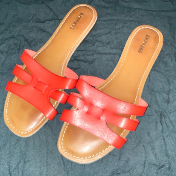 Unused EXPRESS flats — size 9. Pinkish-orange strap on a classy brownish sandal