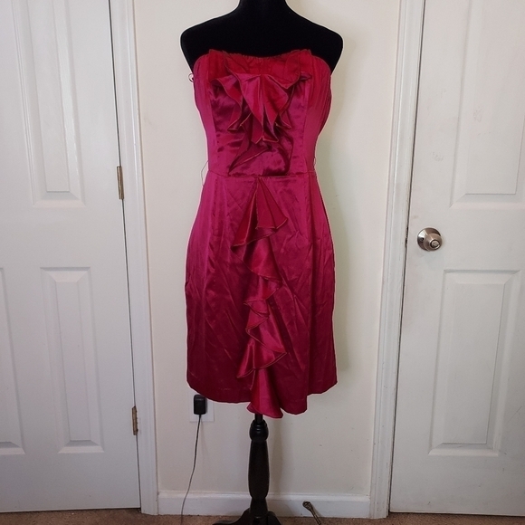 express cocktail dress, strapless,front ruffled detail with back zip and full lining
