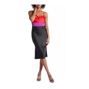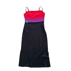 NWT EXPRESS Satin Color Block Black Purple Tier Cowl Neck Midi Slip Dress