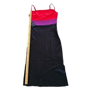 EXPRESS Satin Color Block Black Purple Tier Cowl Neck Y2k Midi Slip Dress