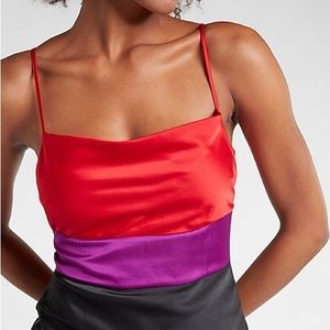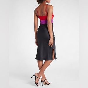 EXPRESS Satin Color Block Tier Cowl Neck Midi Slip Dress Size Small